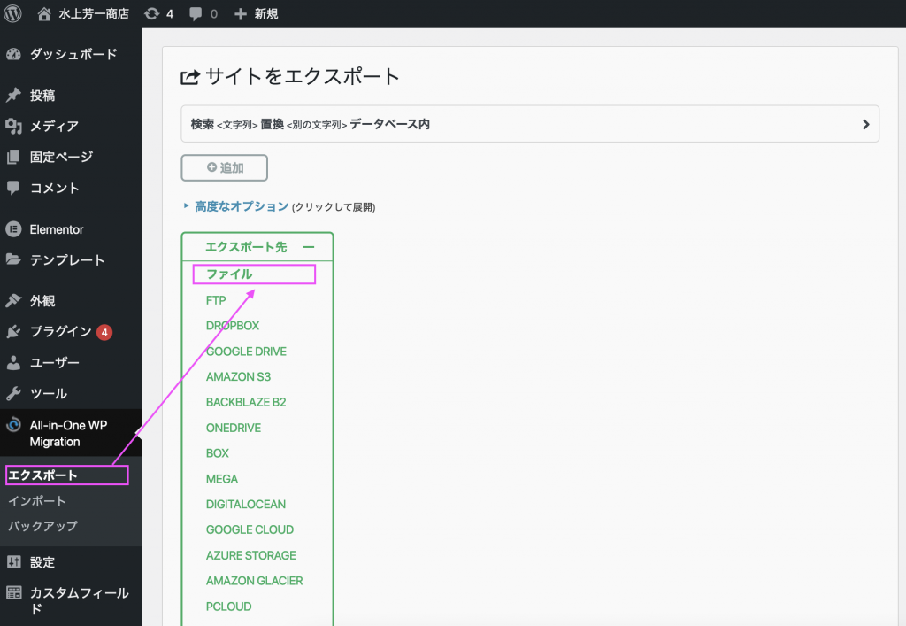 ③ *All-in-one WP Migrationがインストールされていない場合は
