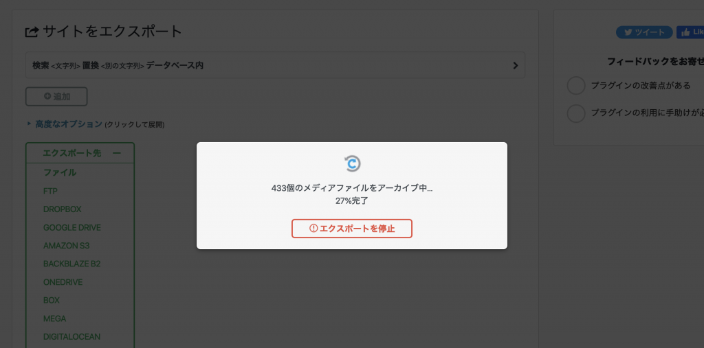 WPが関連するメディアやデータベースなどすべてをバックアップするのでかなり時間がかかることもあります