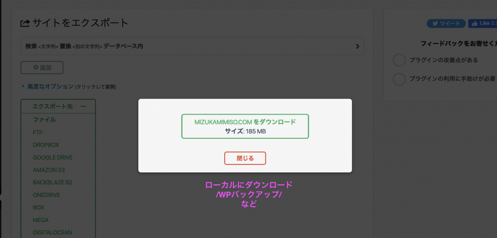 バックアップが済んだらダウンロード