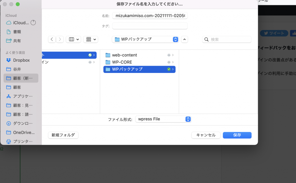 ファイル名を「WPバックアップ」などにして/サイト/入れておきます。