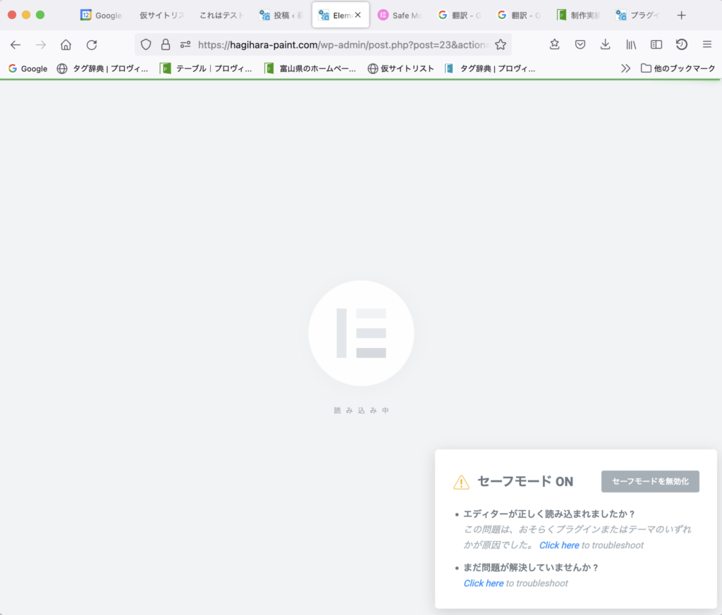 ↓このようにエレメンターの編集ページが反映されずに、エラーが出る場合は次のことを試します。