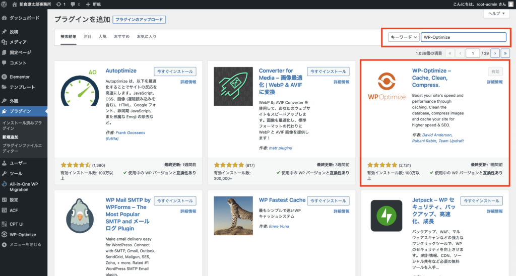 重くなるのを解消するために、プラグイン「WP-Optimize」をダウンロードします。