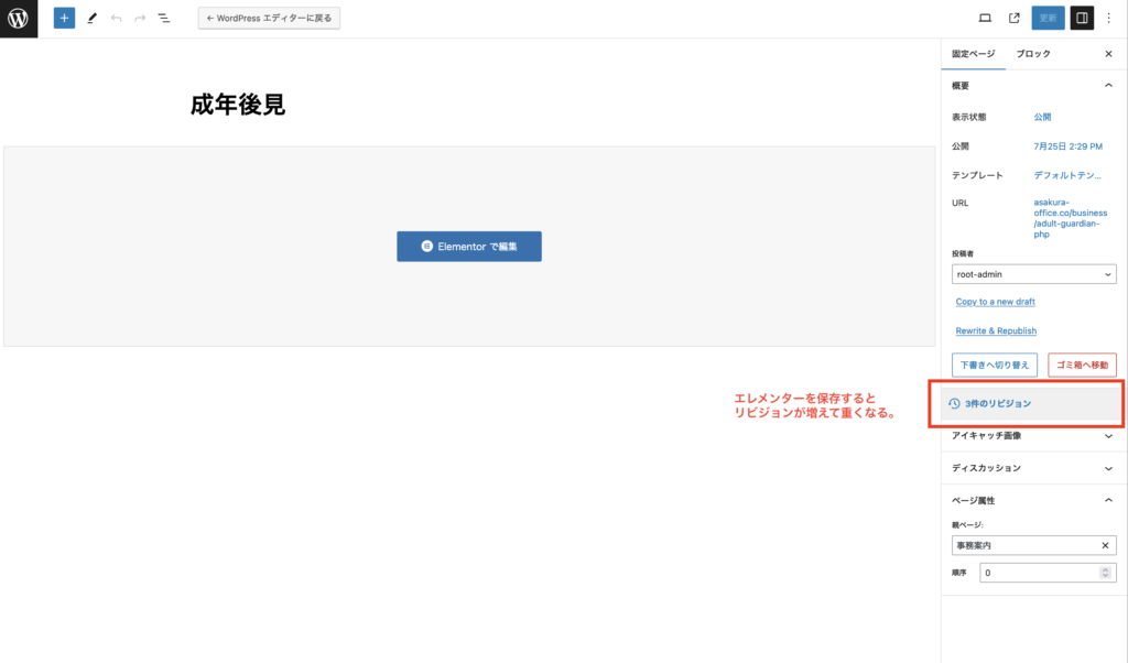エレメンターの保存をするとは、リビジョンがどんどんたまっていくのでデータが重くなります。